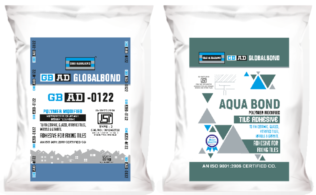AQUABOND & GBAD -0122 is a grey/white, cement-based polymer fortified thick/thin set tile adhesive, designed for installing tiles on walls & floor surface in interior situations. Excellent adhesion for fixing ceramic, porcelain and vitrified tiles using thin or thick bed trowel on existing terrazzo & cement floors.